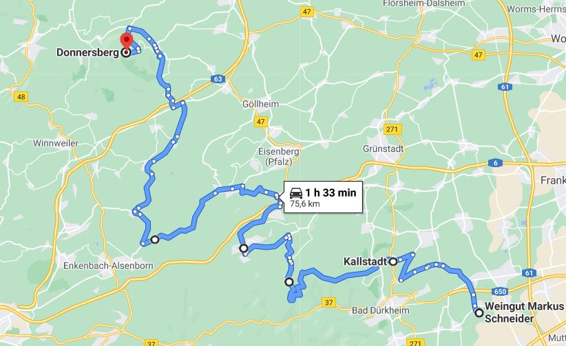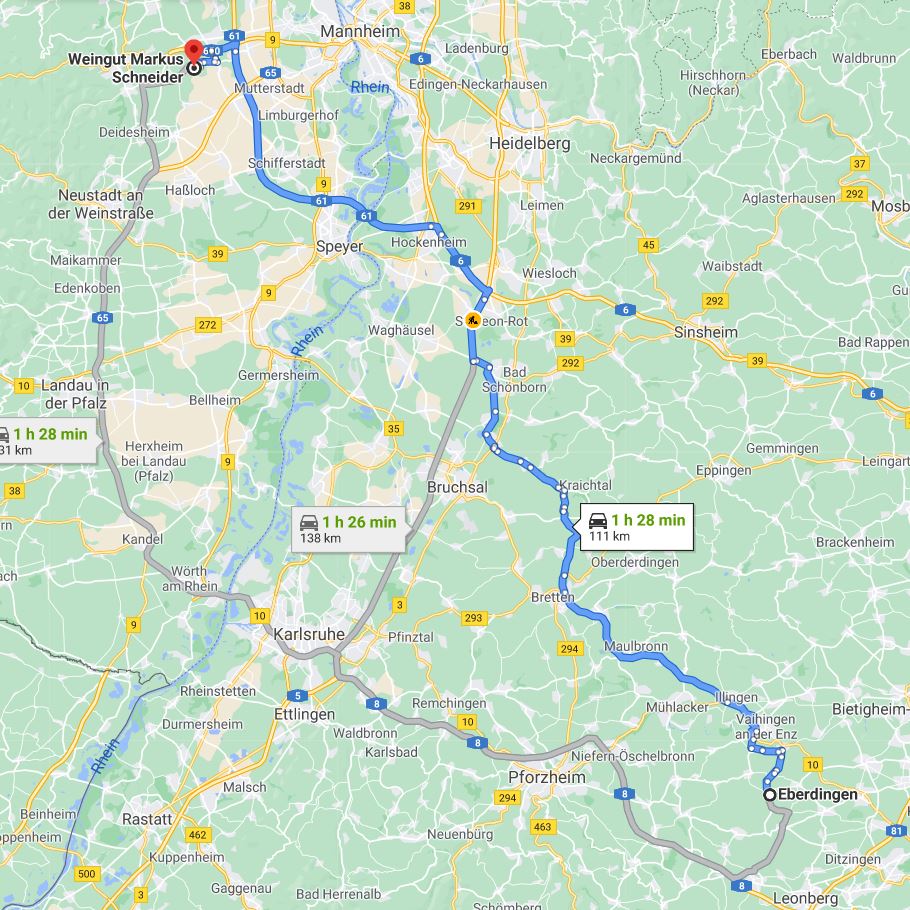 Erstes Ziel war in Ellerstadt das Weingut Schneider. Hier deckten wir uns wie es sich für Genießer so gehört, erstmal mit ein paar guten Tröpfchen vom Ursprung ein. Leider finden in den Coronazeiten keine Weinproben statt, war aber kein Problem, da wir den Wein schon kannten.