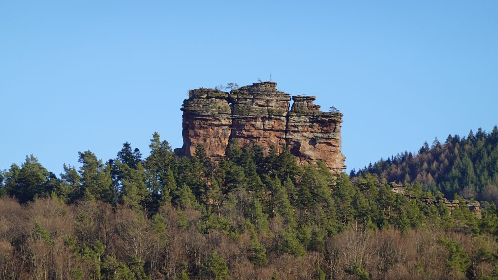 Der Donnersberg ist das höchste Bergmassiv des Nordpfälzer Berglands und der gesamten Pfalz und vulkanischen Ursprungs. Die 686m höchste Stelle des Massivs liegt auf dem Gipfel der Felsformation Königsstuhl.