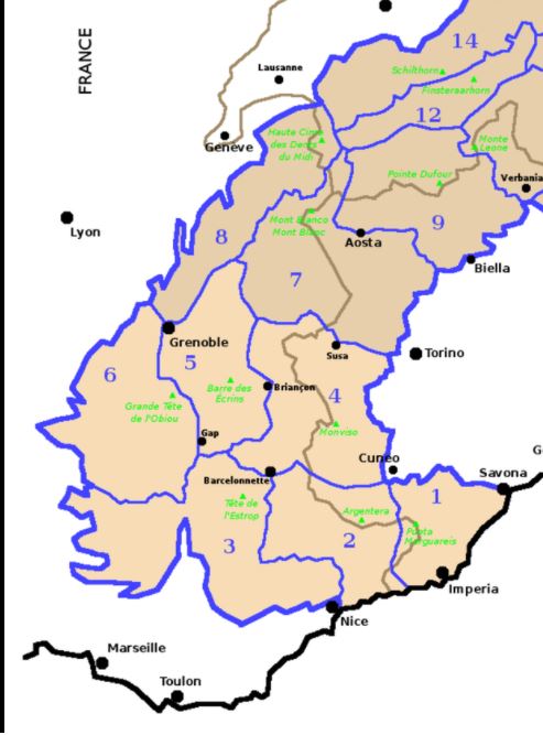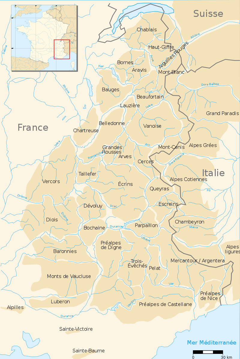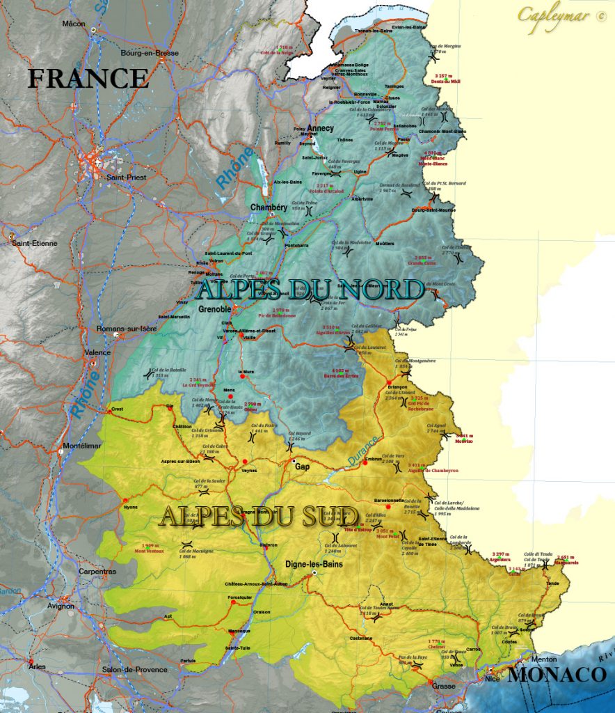 Für alle die etwas Nachhilfe brauchen, hier eine kurze Beschreibung: Die französischen Alpen liegen im südwestlichen Teil der Westalpen. Sie erschließen sich in den neuen großen Regionen Auvergne-Rhône-Alpes und Provence-Alpes-Côte d’Azur.