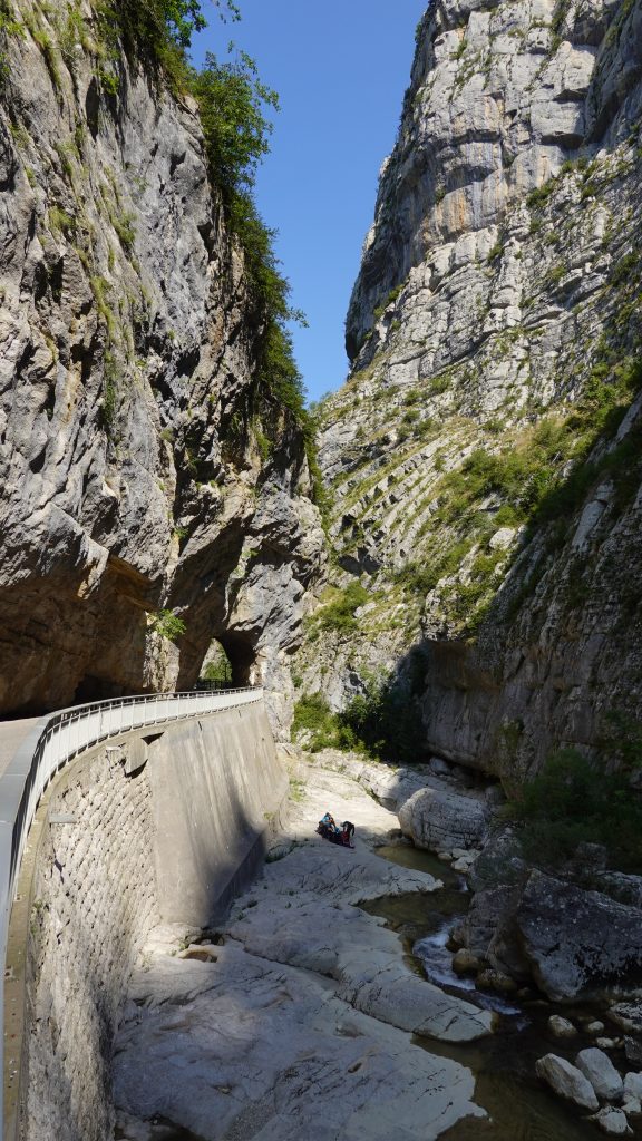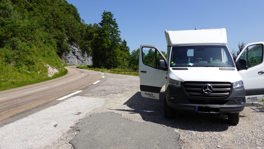 Den Versuch am Lac de St. Croix ein Plätzchen zu ergattern haben wir schnell abgehackt. 🤣 Hier war es so voll, das sämtliche Parkplätze belegt waren. Am Ausgang des Sees fanden wir kurz einen Parkplatz auf den wir gerade so passten, um wenigsten für 10 Minuten ins kühle Nass zu springen. Kurz darauf fuhren wir weiter entlang der Verdonschlucht. Einen Schlafplatz fanden wir in La Palud, oberhalb der Verdonschlucht. Wir fragten einen Bauern an der Straße, wo denn hier ein Campingplatz sei, er zeigte auf die Wiese neben seinem Haus und meint, “ Hier könnt ihr euch hinstellen!“ – Das passte- er schaute sich unser Auto auch genau an und suchte den Abend über immer wieder ein Gespräch.