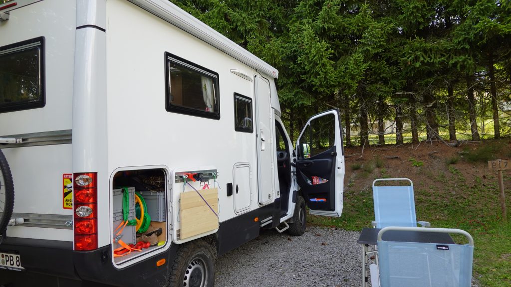 Es ist das vierte Mal das wir diese Tour fahren. 1992 das erste Mal mit dem Motorrad, eine Woche lang Pässe jagen. Das 2. Mal 10 Tage mit dem Mazda M5 gemütliches cruisen. Dann 2015 nochmal mit dem Motorrad allerdings von 2 festen Stationen aus. Und nun mit dem R2F2 – Wir hatten erstmal vor nochmal die Hauptpässe zu fahren. Wobei einige diesmal wegen unseres Gesamtgewichts für uns verschlossen bleiben, aber dafür haben wir uns die Aufgabe gegeben diese Tour nur auf kleinen Straßen zu fahren, keine Autobahn, keine Schnellstraßen, nur weiße und gelbe Landstraßen.