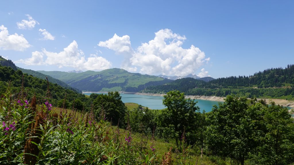 Landschaft, Landschaft, Landschaft, .. imHintergrund das Mont Blanc Massiv; Barrage Comet de Roslend – das Wasser kommt von den Gletschern des Mont Blanc Massif und ist soo I kalt 🥶