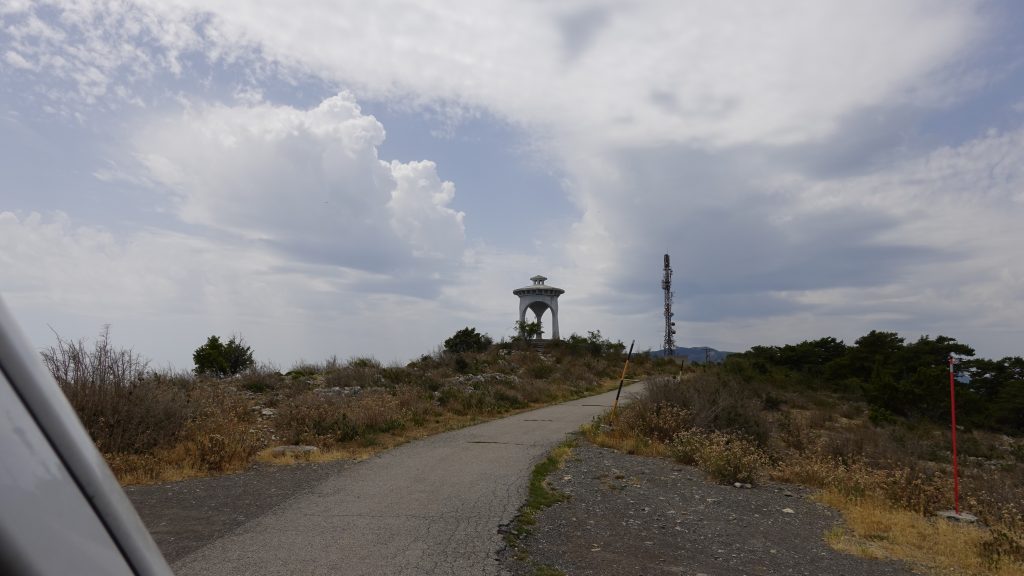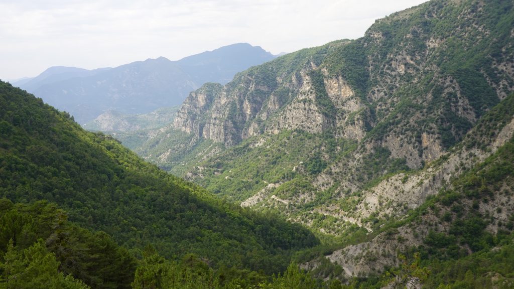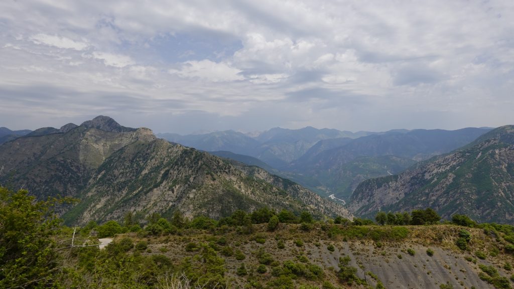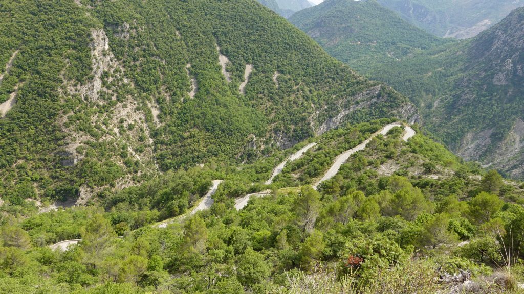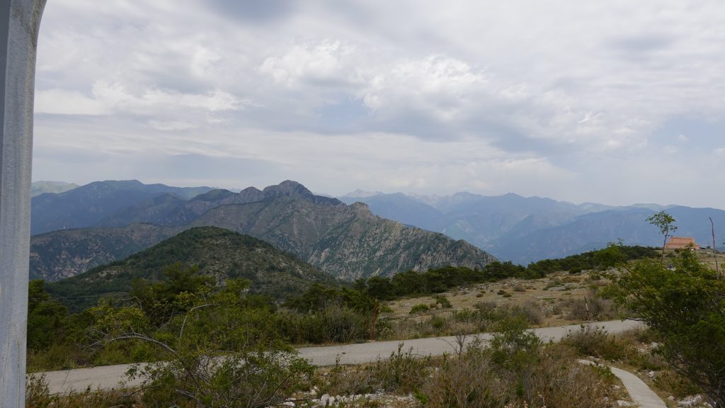 Der Strecketipp von dem Paar aus GP/CW hatte sich gelohnt. Schon die Straße hoch zum Aussichtspunkt Madonna-Utelle hatte es in sich, wie auch die grandiose Aussicht über die südlichen Alpen. Deshalb machten wir hier oben unser Mittagssiesta. Später etwas weiter unten gab es eine Abkürzung nach Tour sur Var, die wir auch fuhren. Hier waren wir zum Glück komplett allein auf der Straße. (siehe Film)