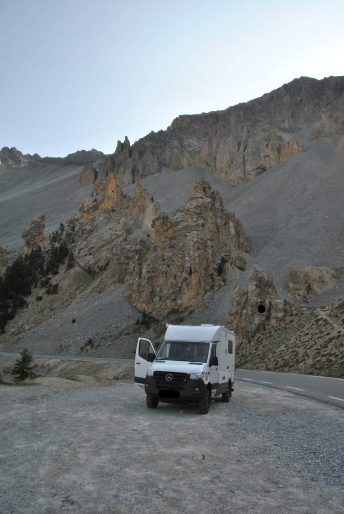 🛏 Stellplatz unterhalb la Bonnett; Wetter 🌞X 🌡️18°C auf den Bergen, 32°C in den Tälern; Etwas länger draußen gesessen, dann wurde es ziemlich windig; Stimmung: 😁; Essen: Mittagssnack, Abend gegrillte Kartoffelschnitz mit Lammkottlette und mediteranes Gemüse.