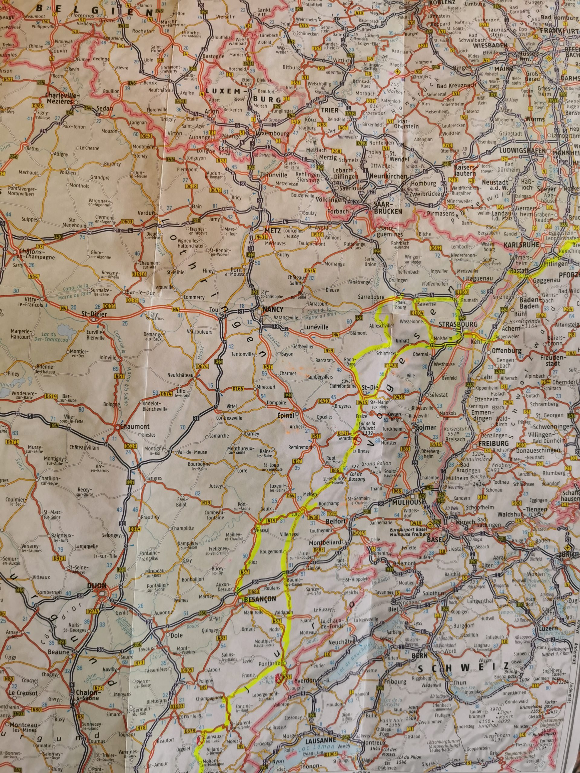 -> Maulbronn -> Ettlingen -> Iffelzheim -> Schirmeck-> Molsheim-> – Lac de Géradmer, Naturpark Ballons des Vosges, Lothringen (230km)
