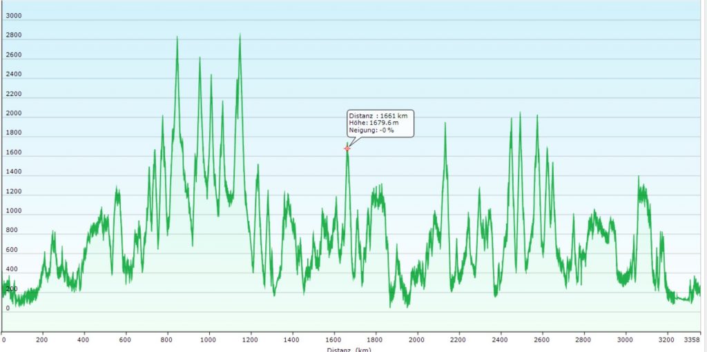 🚍 Streckenverlauf: Unterwegs gefahren – langsam, langsam,🐌🐌 … duchschnitliche Geschwindigkeit 40km/h, keine Autobahn, keine Schnellstraßen, nur weiße und gelbe Landstraßen. |