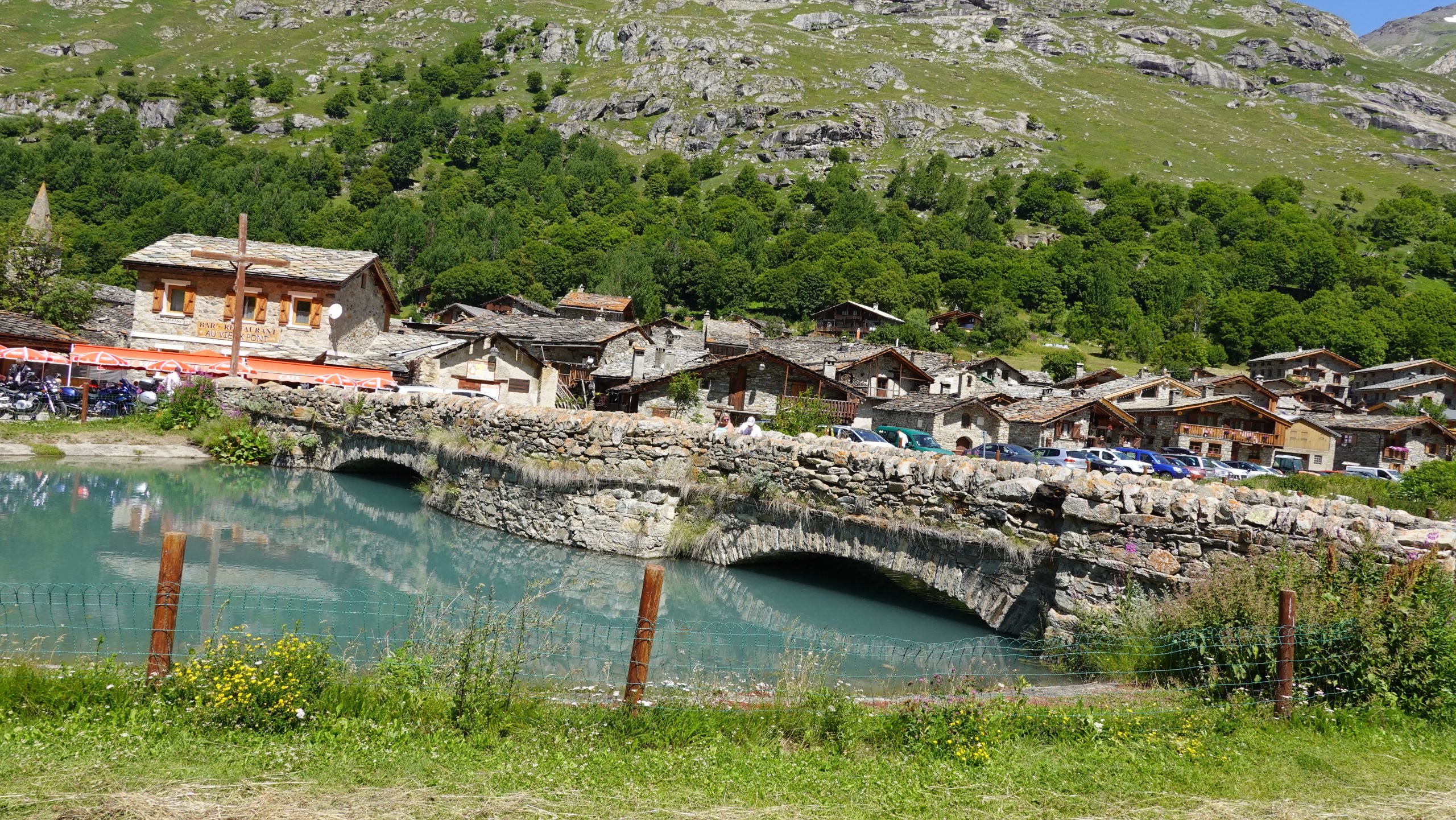 Die eiserne Teufelsbrücke bei Aussion (zwischen Col d’Iseran und Modana) überbrückt hier die tiefe Schlucht der Arc. Die Brücke gehört zur Barrière de l’Esseillon. Es ist eine Verteidigungslinie mit fünf Forts, die die Namen von Familienmitgliedern des Hauses Savoyen tragen, diese Anfang des 19. Jahrhunderts in der Gemeinde errichtet wurden, um Savoyen zu verteidigen. Die Forts wurden mit Hilfe der Entschädigungen, die Frankreich infolge des Wiener Kongresses an das Königreich Sardinien zahlen musste, erbaut. Die Barrière schützte den Zugang zum Col de Mont Cenis und machte das Herzogtum Savoyen zu einer Pufferzone gegenüber Frankreich. Sie wurden in den folgenden Jahren nie in Kämpfe hineingezogen. Der Vertrag von Turin 1860, in dem Savoyen an Frankreich angegliedert wurde, sah vor, dass Frankreich die Forts zerstören musste. Diese Abmachung wurde nur beim Fort Charles-Félix umgesetzt. Die französische Armee setzte die übrigen Anlagen instand, um ihr Land vor einer italienischen Invasion zu schützen. Während des Zweiten Weltkriegs wurden die Forts vom Königreich Italien besetzt. Nach dem Waffenstillstand wurde aus dem größten Fort Vittorio-Emanuele, in dem eine Garnison von 1500 Mann stationiert werden konnte von den Deutschen besetzt, die dort einen Bunker anlegten, von dem aus sie die Nationalstraße unter Beschuss nehmen konnten. Nach Kriegsende verfielen die Forts. Fort Vittorio-Emmanuele, wurde zum Gefängnis für politische Gefangene. Aus dem höchstgelegensten und alleine am linken Ufer des Arc liegende der fünf Forts, Maria-Teresa wurde eine Kaserne der Guardia di Finanza, es ist heute vollständig restauriert und beherbergt eine Bar und ein Museum. Fort Marie-Christine ist vollständig restauriert worden und beherbergt ein Restaurant und eine Jugendherberge. Fort Charles-Albert wurde nie fertiggestellt. ( Quelle: wikipedia)