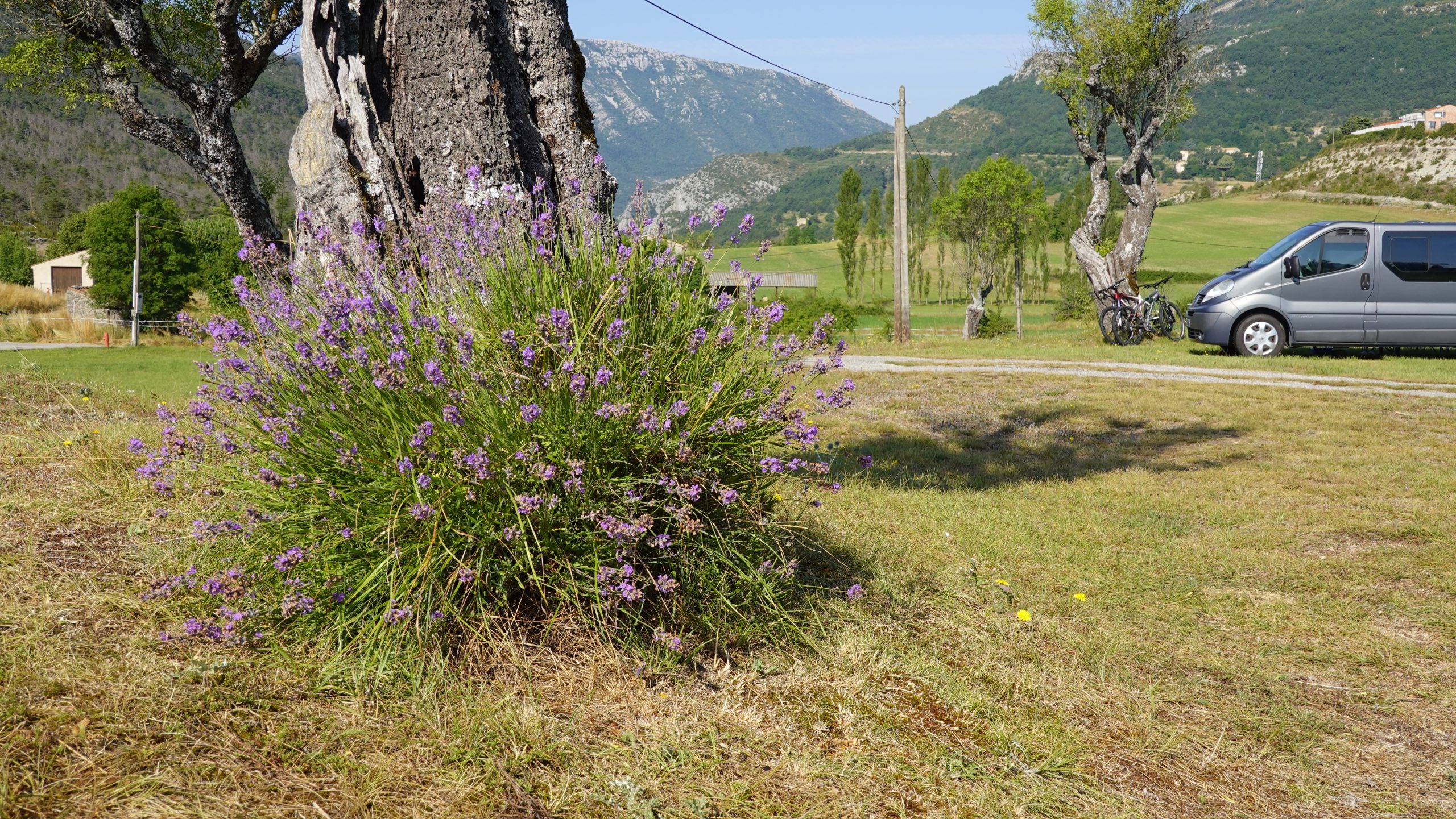 Den Versuch am Lac de St. Croix ein Plätzchen zu ergattern haben wir schnell abgehackt. 🤣 Hier war es so voll, das sämtliche Parkplätze belegt waren. Am Ausgang des Sees fanden wir kurz einen Parkplatz auf den wir gerade so passten, um wenigsten für 10 Minuten ins kühle Nass zu springen. Kurz darauf fuhren wir weiter entlang der Verdonschlucht. Einen Schlafplatz fanden wir in La Palud, oberhalb der Verdonschlucht. Wir fragten einen Bauern an der Straße, wo denn hier ein Campingplatz sei, er zeigte auf die Wiese neben seinem Haus und meint, “ Hier könnt ihr euch hinstellen!“ – Das passte- er schaute sich unser Auto auch genau an und suchte den Abend über immer wieder ein Gespräch.