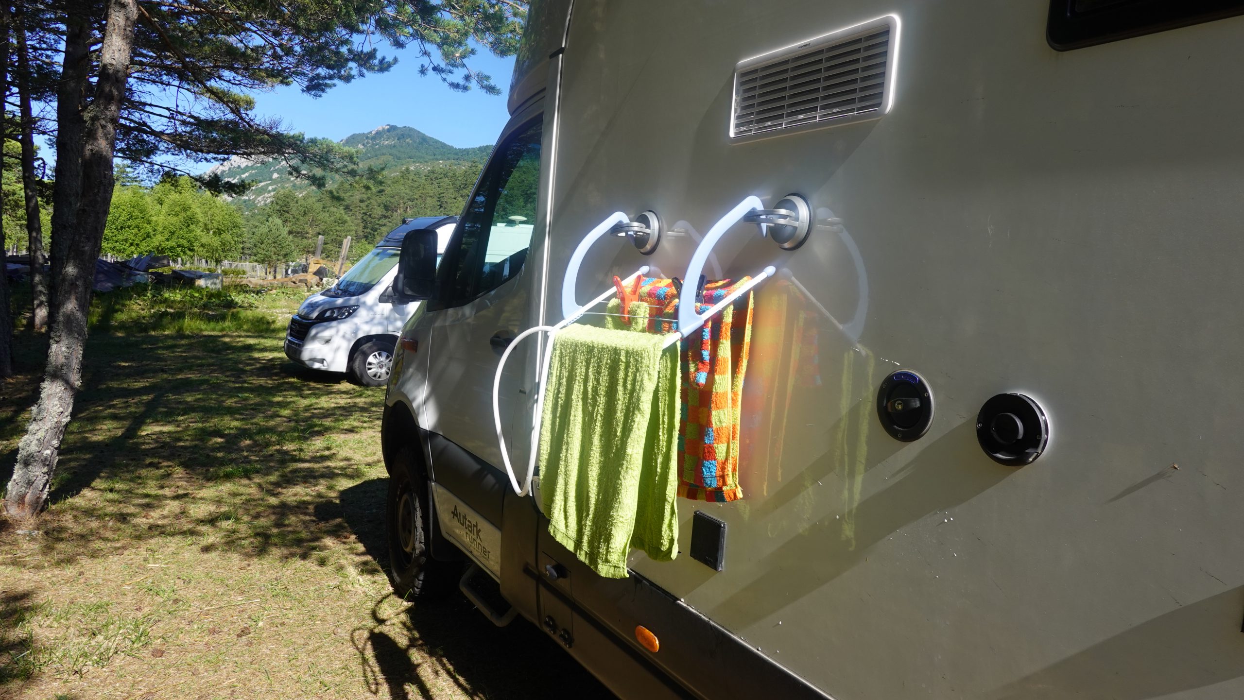🛏 Stellplatz unterhalb la Bonnett; Wetter 🌞X 🌡️18°C auf den Bergen, 32°C in den Tälern; Etwas länger draußen gesessen, dann wurde es ziemlich windig; Stimmung: 😁; Essen: Mittagssnack, Abend gegrillte Kartoffelschnitz mit Lammkottlette und mediteranes Gemüse.